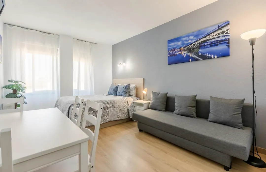 Apartament Hispalis Triana, gesitueerd op 200 meter loopafstand van Parque de los Príncipes en het Koninklijk Theater Maestranza, biedt uitzicht op de stad.